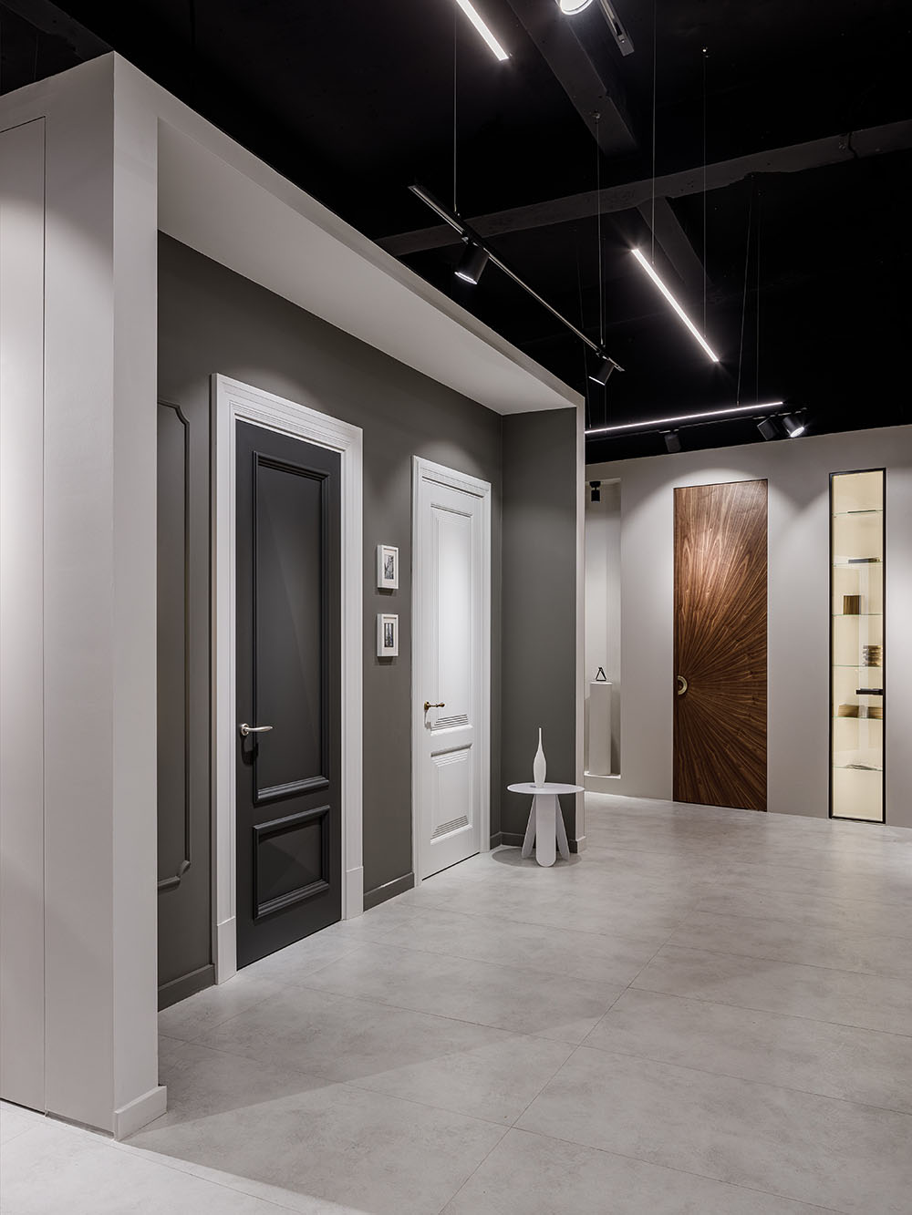 - Минимализм: Гладкие поверхности, простые формы, монохромные цвета (белый, серый, черный).