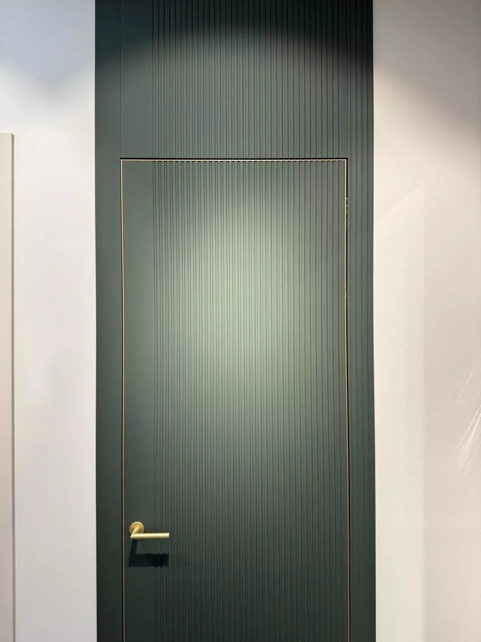 - Скрытые двери Дверь, которая выглядит как часть стены за счет установки декоративных стеновых панелей из МДФ в идентичной с полотном фрезеровке.