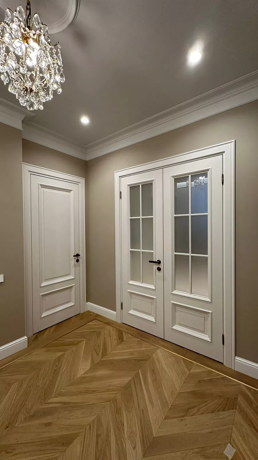 Двустворчатые межкомнатные двери — это двери, состоящие из двух створок. Они часто используются в широких дверных проемах, а также в интерьерах, где важно подчеркнуть стиль и создать ощущение простора. Такие двери могут быть как распашными, так и раздвижными, в зависимости от конструкции.