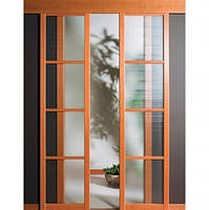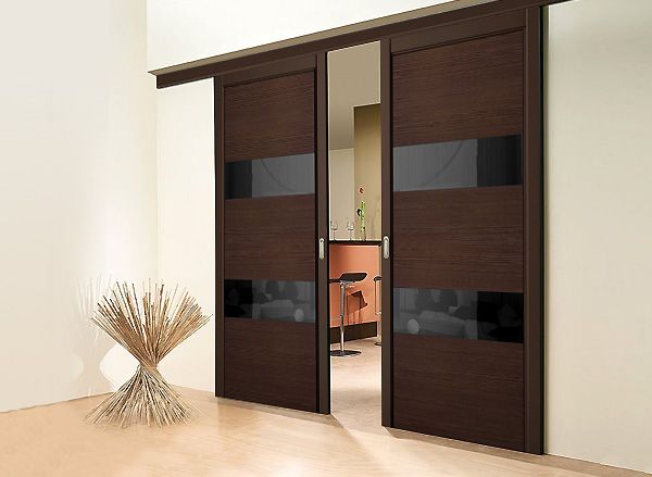• различные варианты остекления - крупные прозрачные вставки, узкие полосы белого или чёрного триплекса, зеркала, витражи;